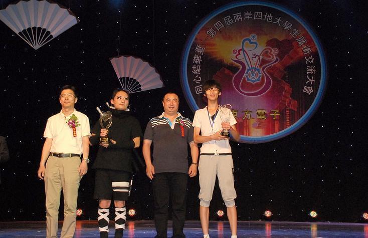 经过八个月来一轮轮精心筛选,共有25位来自两岸三地高校的大学生魔术师进入交流大会总决赛。经过紧张刺激的比拼,首都经济贸易大学朱亚男、东北大学大连艺术学院陈辉获得近景魔术比赛金奖。辽宁科技大学张泽龙、香港城市大学潘浩廷获得舞台魔术比赛金奖。来自辽宁科技大学张泽龙和辽宁建筑大学城市建设学院的陶秋晨分别获得“佛山市阳桃科技有限公司杯”和“博爱之星杯”大奖。