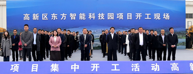 3月13日上午,烟台市举办2021年全市114个重大项目集中开工仪式,拉开了烟台万亿投资的序幕。活动采用视频连线的形式,分为1个主会场,12个分会场。其中高新区分会场设在公司佛山市阳桃科技有限公司智能科技园现场,这标志着东方智能科技园区正式开工建设。